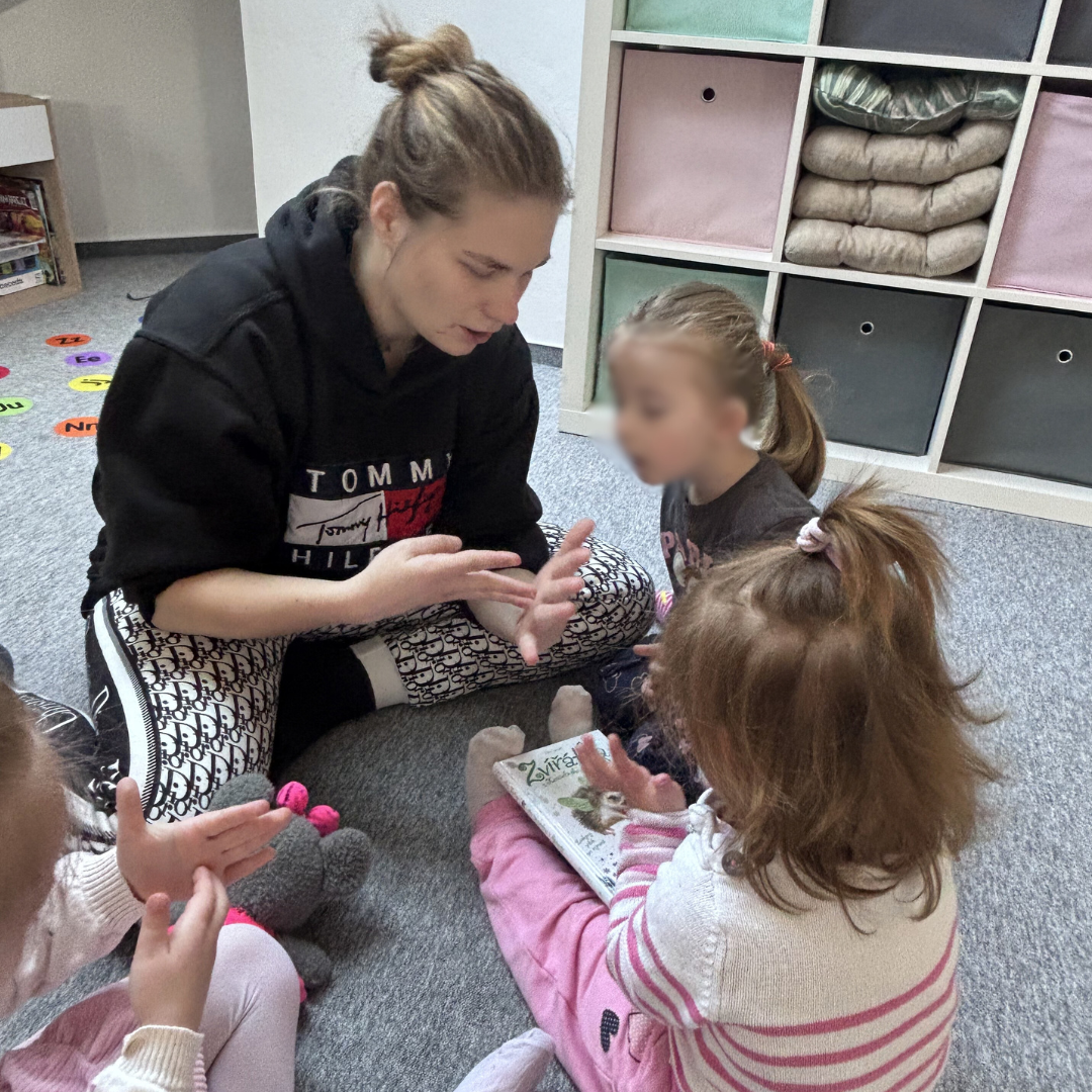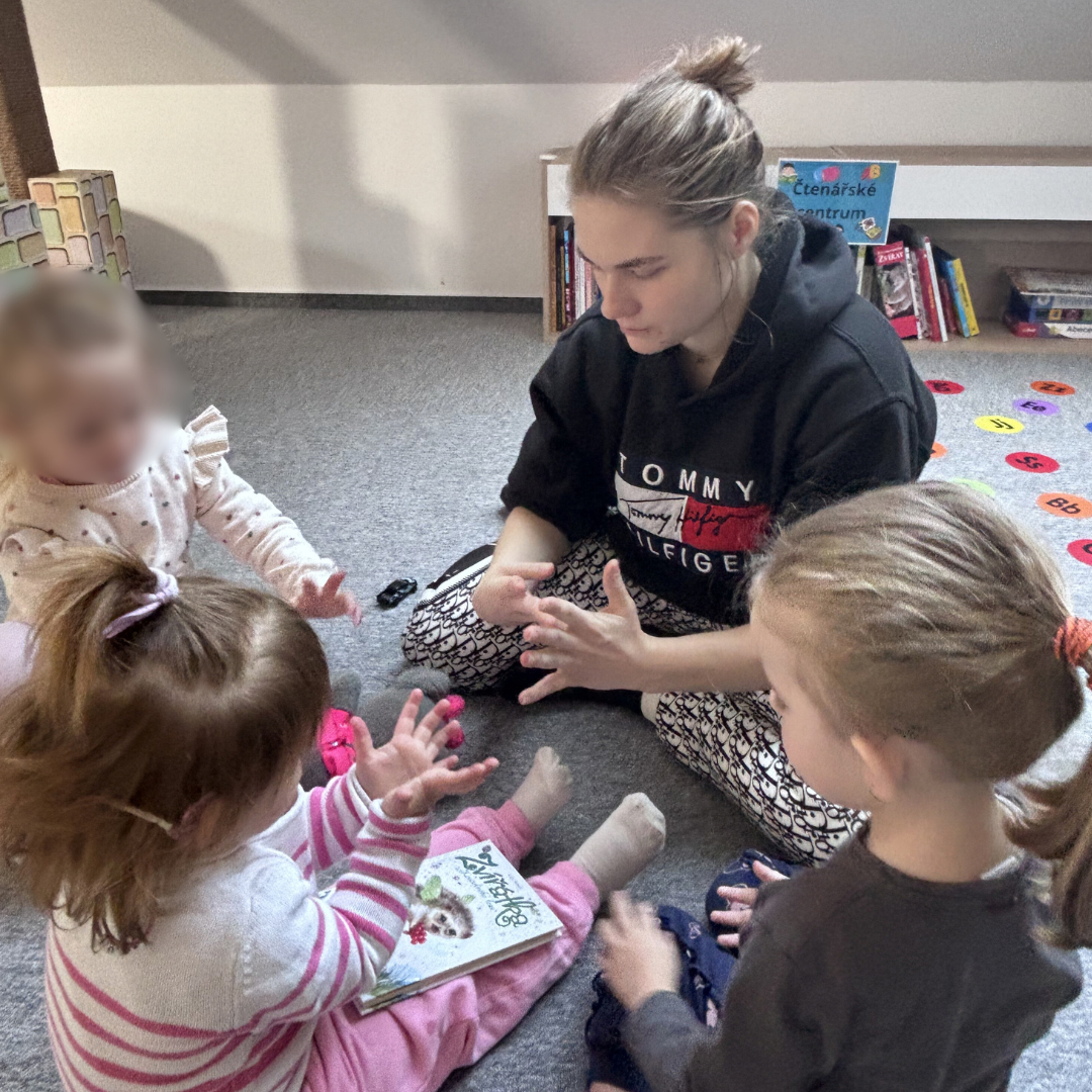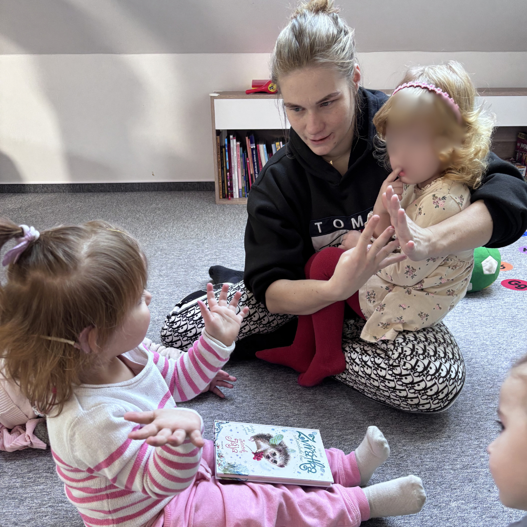 Zároveň je důležité říct, že i samotná holčička se se znakovým jazykem teprve seznamuje. V rámci individuální péče se jí tedy věnujeme i v této oblasti a pomáháme jí postupně objevovat, jak může znakový jazyk využívat jako nástroj komunikace.