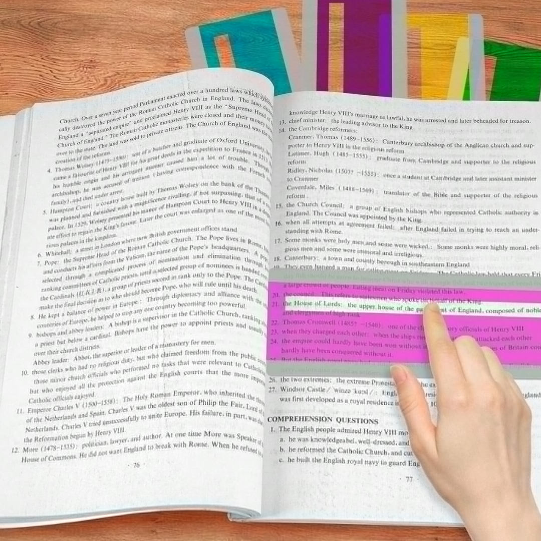 - bez prstu/záložky se v textu výrazně ztrácí